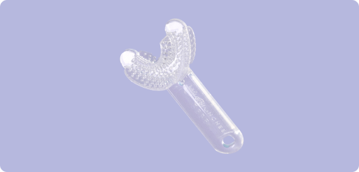 The Myo Munchee is a small chewing device made of soft, medical grade silicone. Shaped like a mouthguard, with a handle attached, the mouthpiece is soft, but durable, with lots of silicone prongs, which massage the teeth and gums.